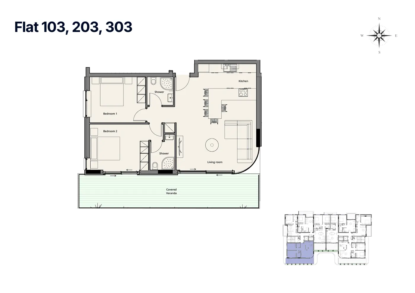 Apartment 103 is a spacious two-bedroom, two-bathroom apartment offering 84 m² of internal living space, seamlessly connected to an expansive 28 m² covered veranda ideal for entertaining and outdoor dining. Both bedrooms benefit from en-suite bathrooms, creating a layout that balances privacy with flexibility for couples, families, or guests.