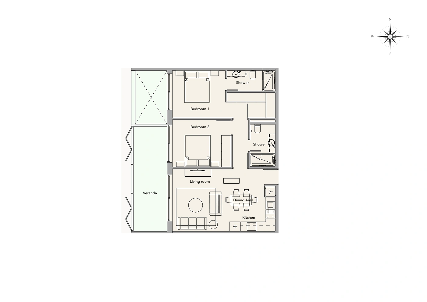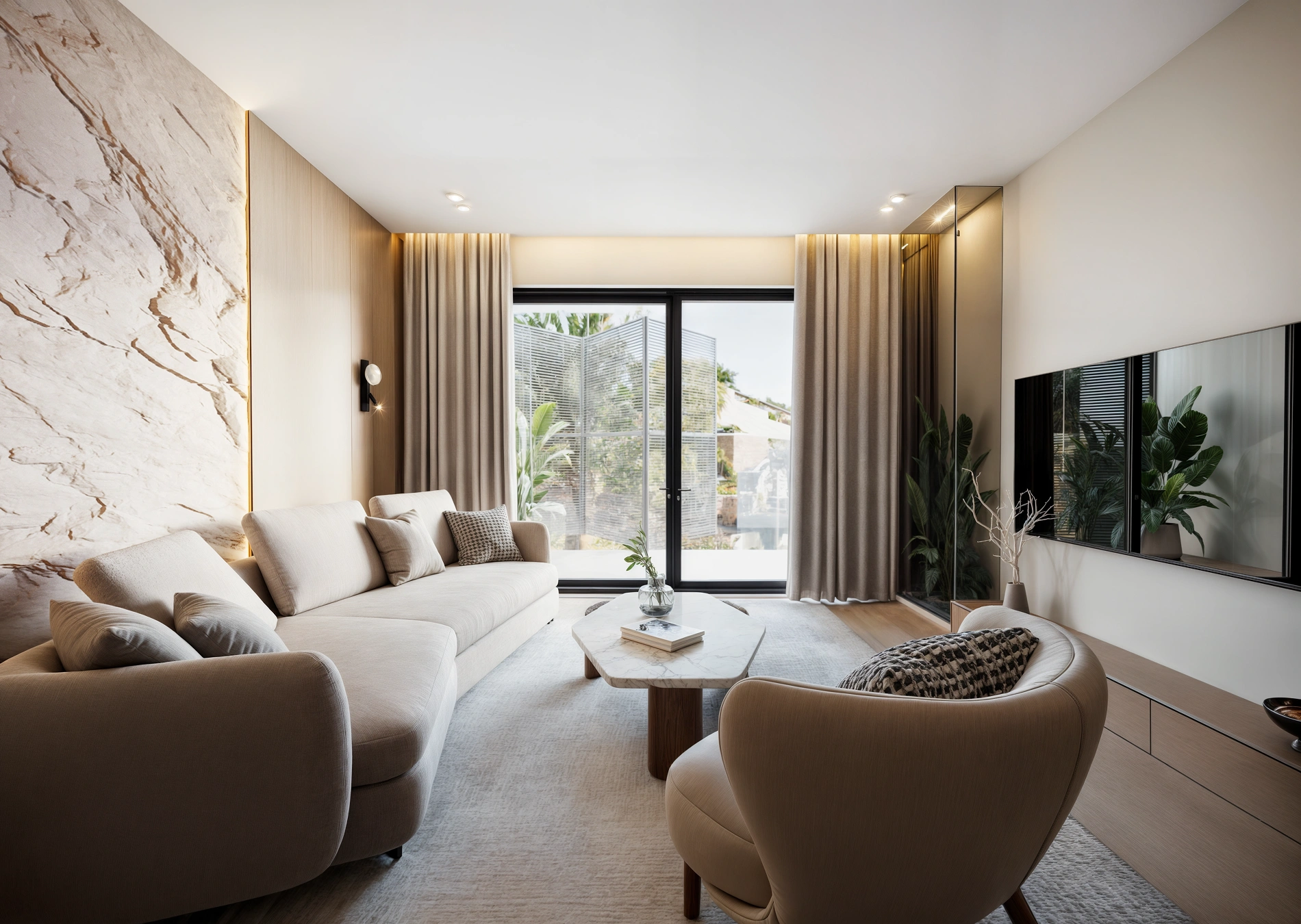 A ground-floor retreat immersed in CHIELO’s calm west-facing gardens, B002 balances indoor comfort with nature-led surroundings. Offering 74.6 m² of interior space, the layout is bright and efficient, with an emphasis on flow and livability.