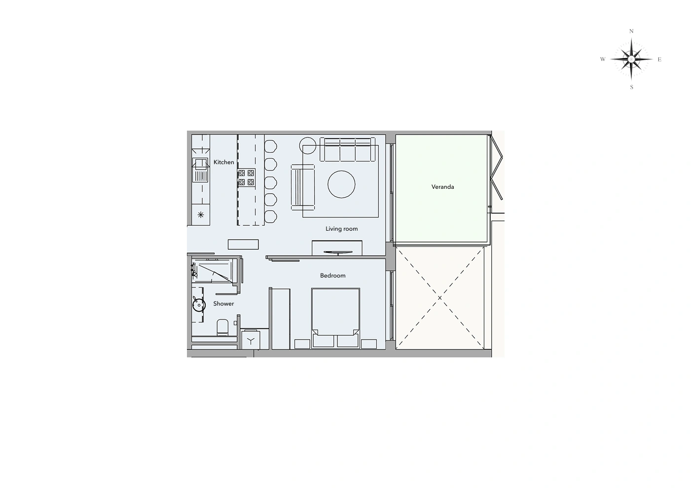 C102 offers a serene and uplifting living experience overlooking the communal pool. The 51.7 m² interior is well-proportioned and filled with soft, even natural light throughout the day, while the 12.1 m² covered veranda provides a calm and shaded outdoor space ideal for quiet mornings, reading, or evening relaxation.