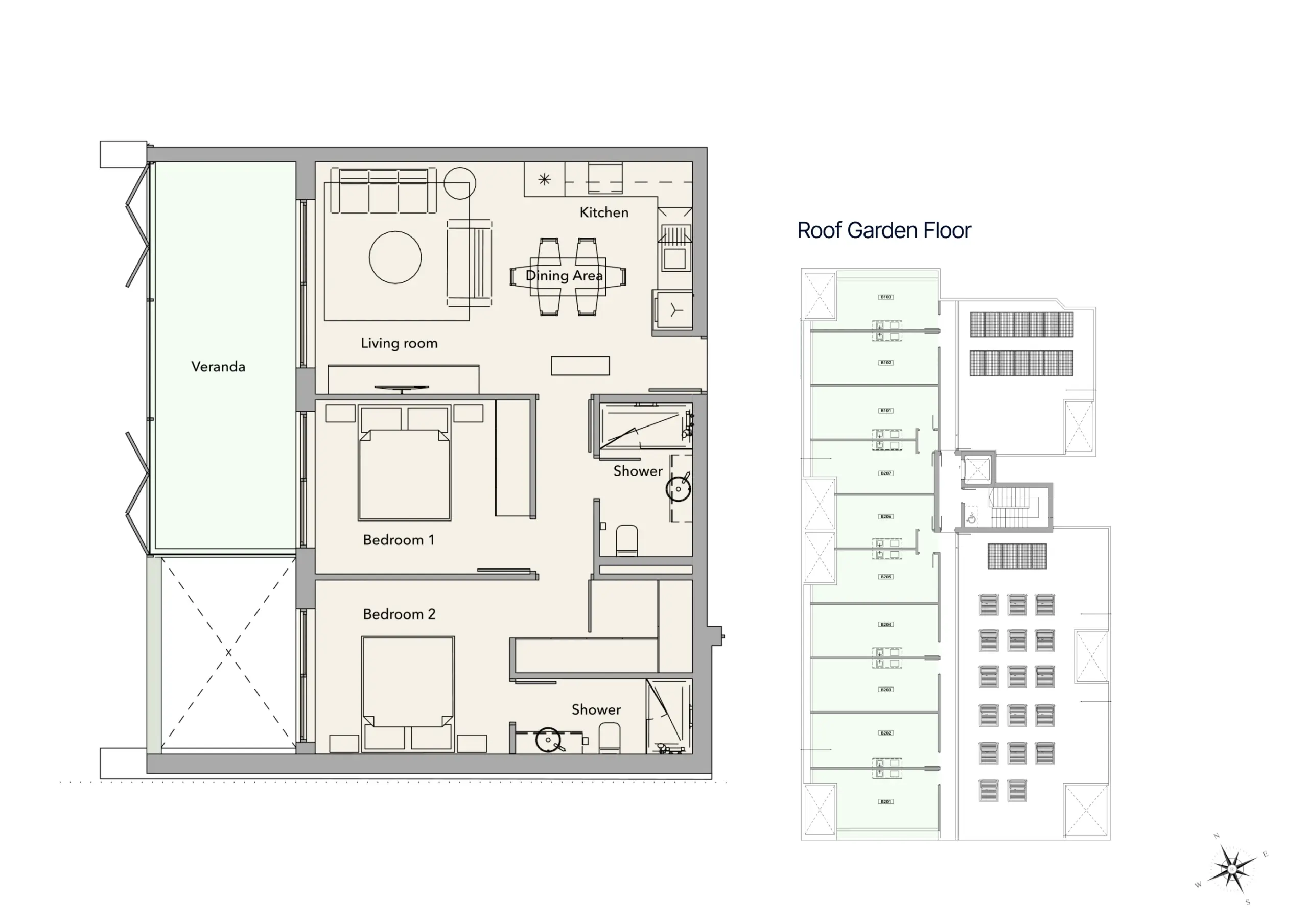 B103 — 2 Bedroom, Garden View & Roof Garden