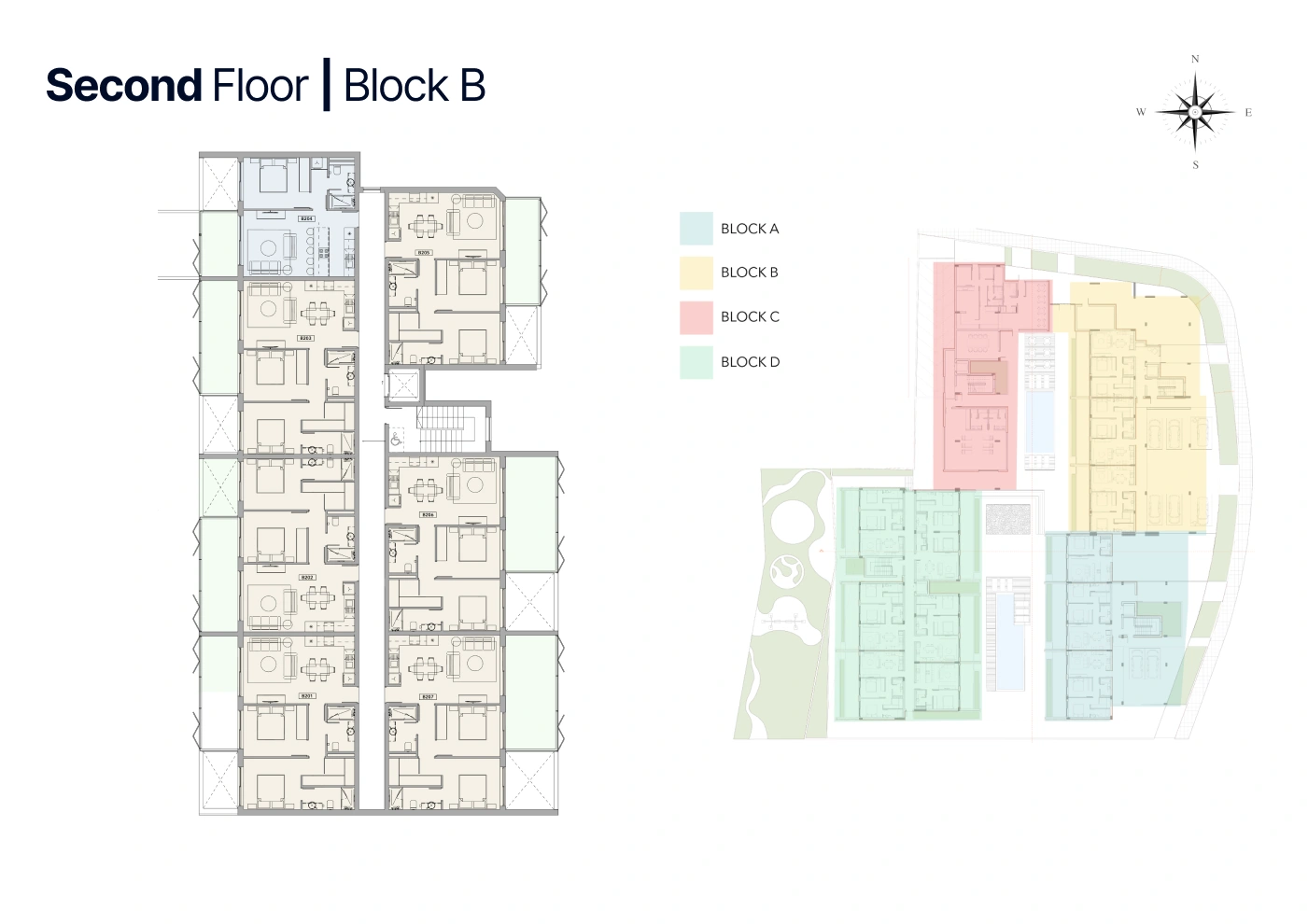 B202 enhances elevated living with its graceful blend of interior comfort and expansive outdoor areas. The 73 m² interior opens to a 15.7 m² veranda with serene pool views, while its 33.2 m² private roof garden creates a spacious outdoor haven ideal for entertaining or personal retreat.