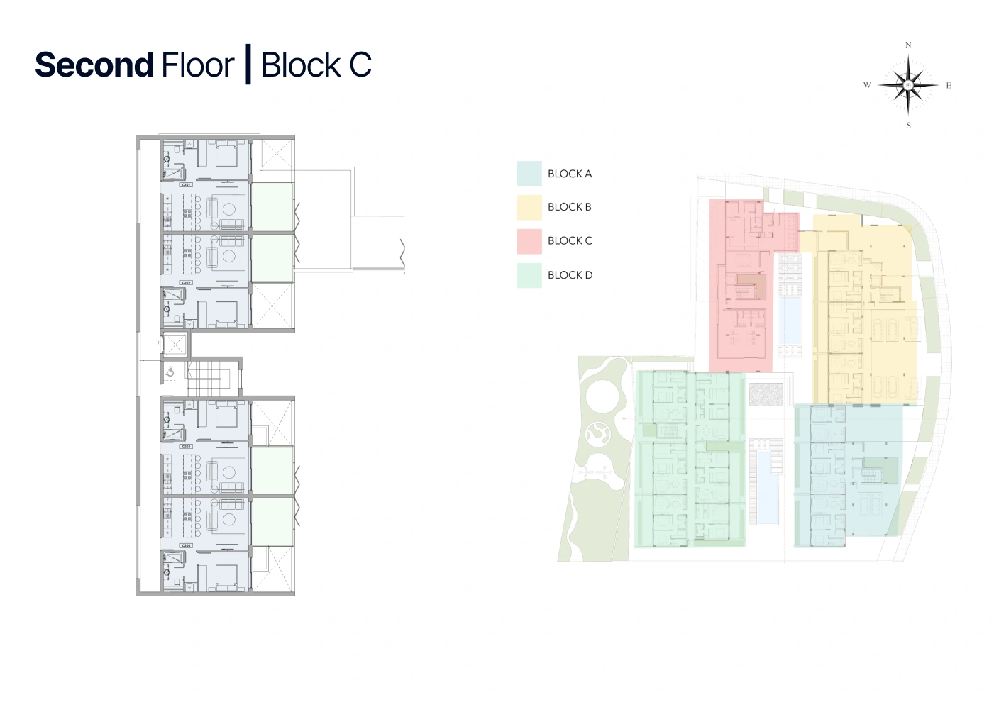 C202 is a standout one-bedroom residence distinguished by an exceptionally large 31.5 m² private roof garden. The 51.7 m² interior is both modern and welcoming, designed with proportions that feel open and calming. Its 12.1 m² veranda offers beautiful views, reinforcing the apartment’s serene atmosphere.