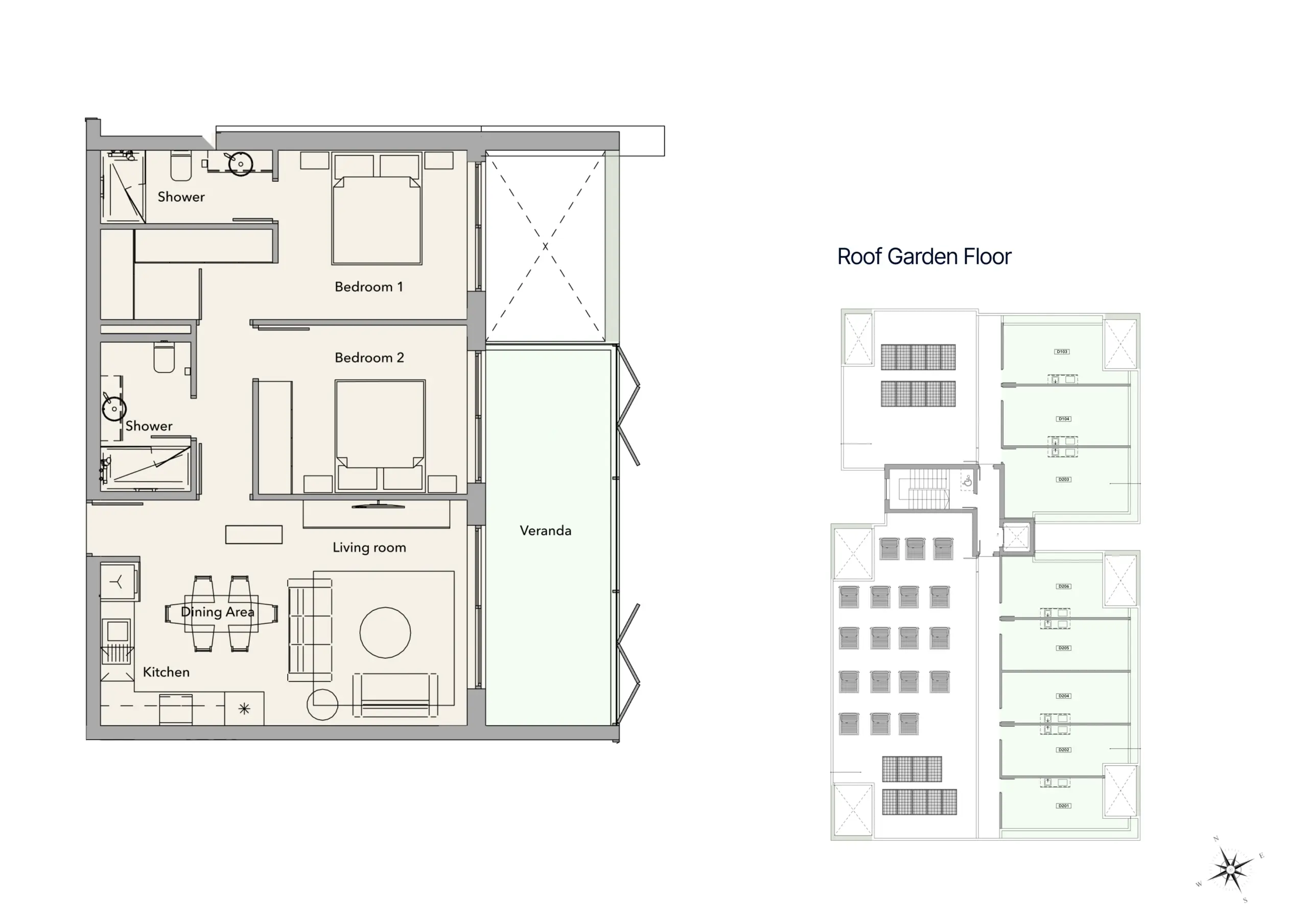 D202 — 2 Bedroom, Pool View & Roof Garden