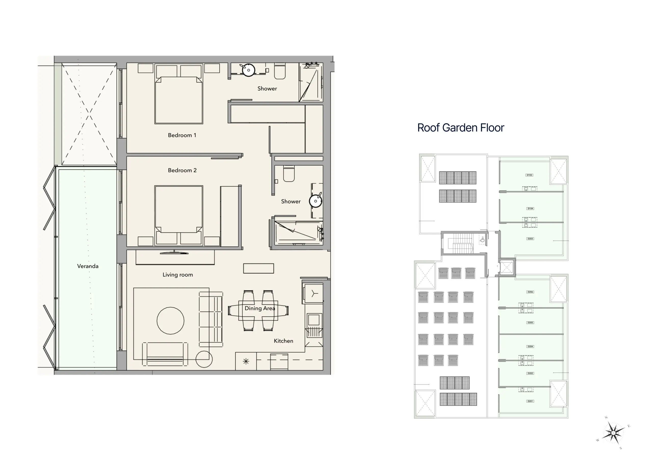 D205 — 2 Bedroom, Village Outlook & Roof Garden